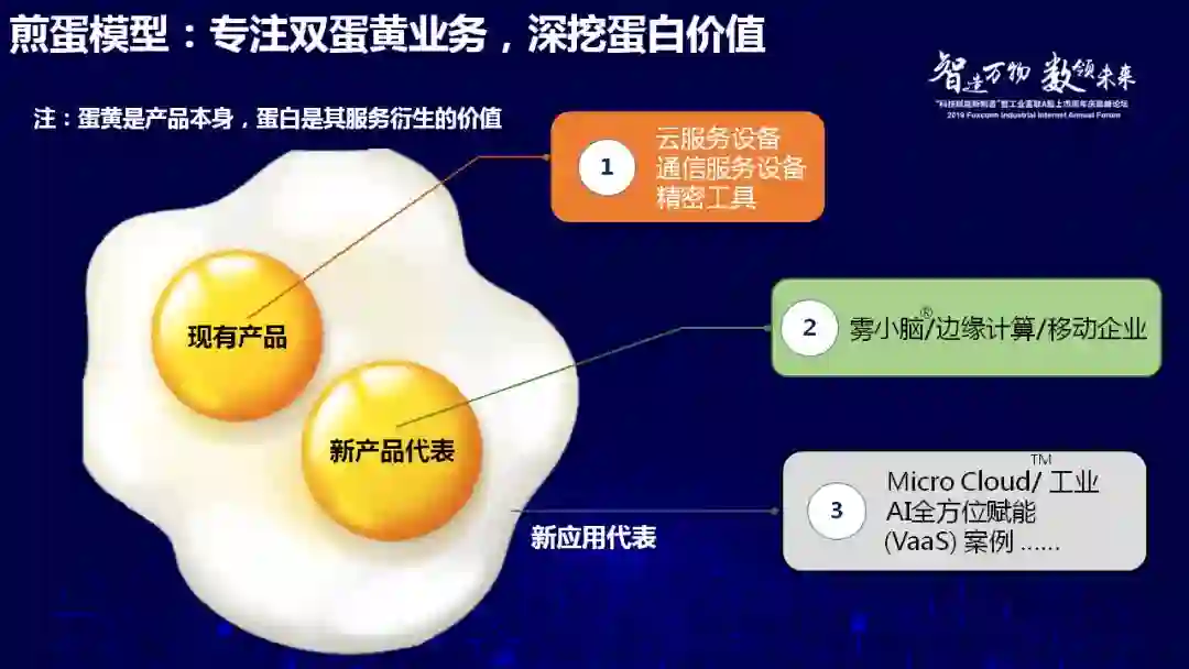 会议中,工业富联将原有的“煎蛋模型”升级为“双蛋模型”。