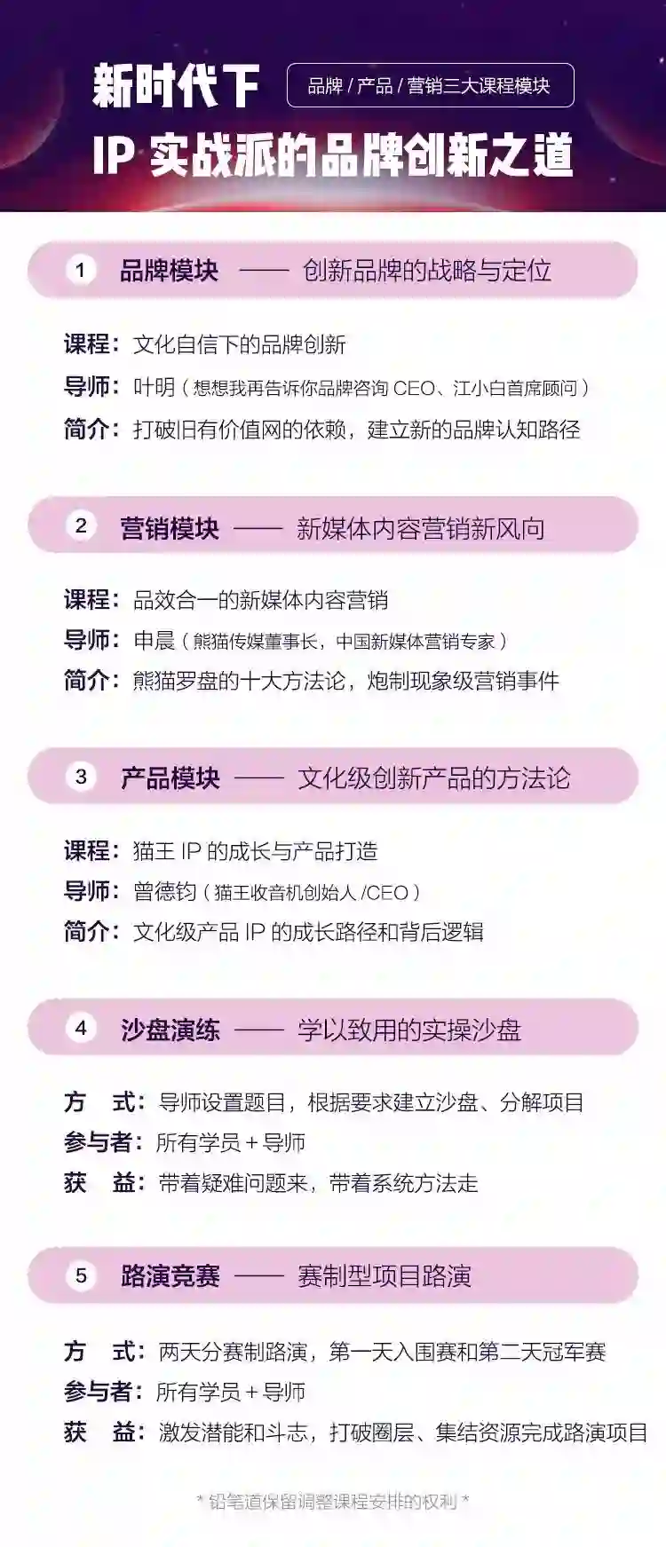 ▌三大课程模块,两天路演竞赛,一次系统演练,让你掌握赢家的方法