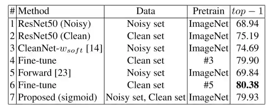 为了显示残差网络的影响,我们比较了不同的训练方式。可以看出,加入残差网络,以协同的方式训练分类器g和h,在OpenImage 和Clothing1M上 可以分别提升1.4%(mAP) 和 4.8% (top-1)。
