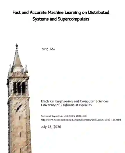 过去的十年见证了深度学习(DL)应用数据量的巨大增长。因此,深度神经网络(DNNs)的训练时间过长已经成为机器学习(ML)开发者和研究者的瓶颈。例如,在8个P100 gpu上完成90-epoch ImageNet/ResNet-50的训练需要29个小时。在16个v3 TPU芯片上完成BERT预训练需要81小时。本文主要研究的是快速准确的ML训练。尽管生产团队希望充分利用超级计算机来加速训练过程,但传统的优化器无法扩展到数千个处理器。在本论文中,我们设计了一系列基本的优化算法来提高DL系统的并行度。我们的算法为谷歌、英特尔、腾讯、英伟达等最先进的分布式系统提供支持。本文的重点是弥合高性能计算(HPC)和ML之间的差距。