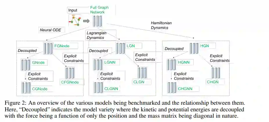 最近,图神经网络在模拟动态系统方面获得了很多关注,因为其归纳性导致了零样本泛化。同样,深度学习框架中基于物理学的归纳偏差已被证明在学习物理系统的动力学方面具有卓越的性能。越来越多的文献试图将这两种方法结合起来。本文评估了13种不同的图神经网络的性能,即哈密顿和拉格朗日图神经网络、图神经ODE及其具有显式约束和不同架构的变体。我们简要解释了理论公式,强调了这些系统在归纳偏差和图架构方面的异同。在弹簧、摆、引力和3D可变形固体系统上评估了这些模型,以在推出误差、能量和动量等守恒量以及对未见系统尺寸的通用化方面比较性能。我们的研究表明,带有附加归纳偏差的gnn,如显式约束和动能和势能的解耦,表现出显著增强的性能。此外,所有基于物理学的GNNs对比训练系统大一个数量级的系统大小表现出零样本泛化能力,从而为模拟大规模现实系统提供了一条有希望的路线。