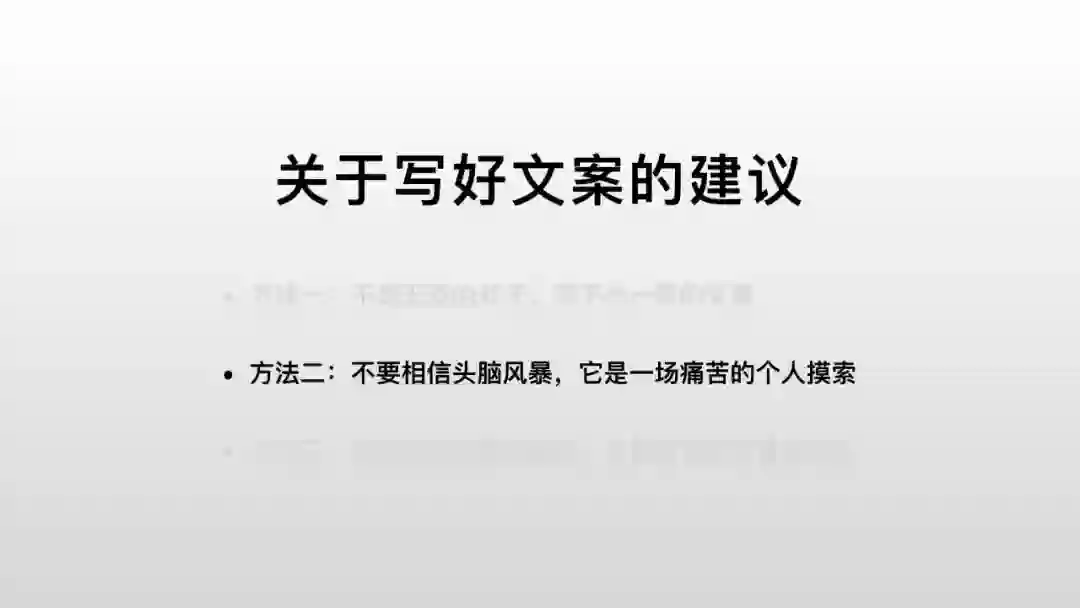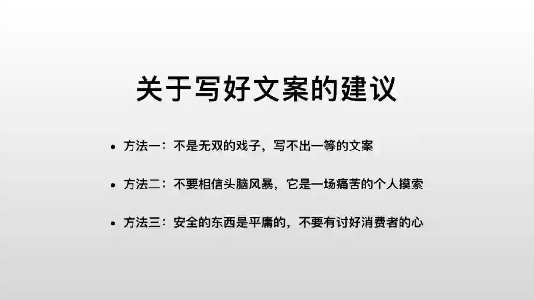 所以这次 HR 和一些同事建议我讲讲文案。但我肯定无意给大家讲什么基础的怎么写个标题如何写个软文如何定个广告语之类的。这次我打算讲讲顶级文案的样子。什么是顶级文案,我认为顶级文案都是解决人心问题的。