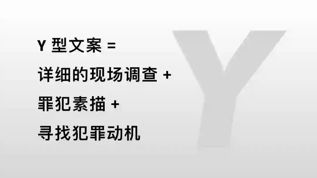 所以功能性文案或者说 Y 型文案通常都像是一个侦探,像侦探一样事无巨细,找出产品的独特卖点,在这个基础上整合出来一个购买动机,最后呈现给消费者。