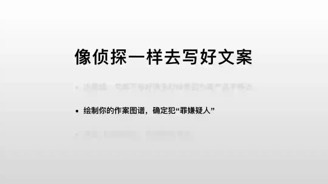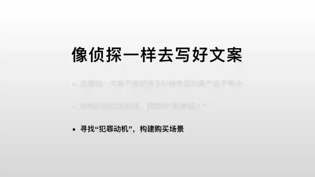 当然李教授有自己的方法论,我这里只是说我的理解,我觉得要写好这类文案你就应该把自己当成一个侦探,所以我经常跟大家说应该「像侦探一样去写文案]。