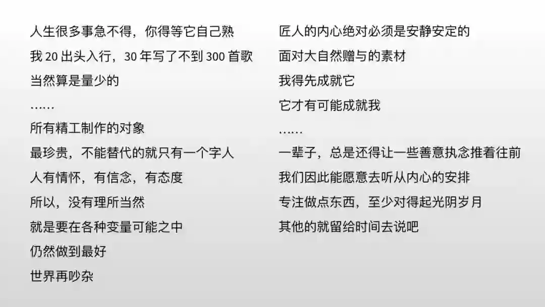 这个文案是李宗盛在原来广告公司提的文案基础上,自己改出来的。李宗盛月薪多少我不知道。但我反复看了不下 20 遍后承认,你给我三十万我也写不出来这个水平。不是不想赚这个钱,是没能力。