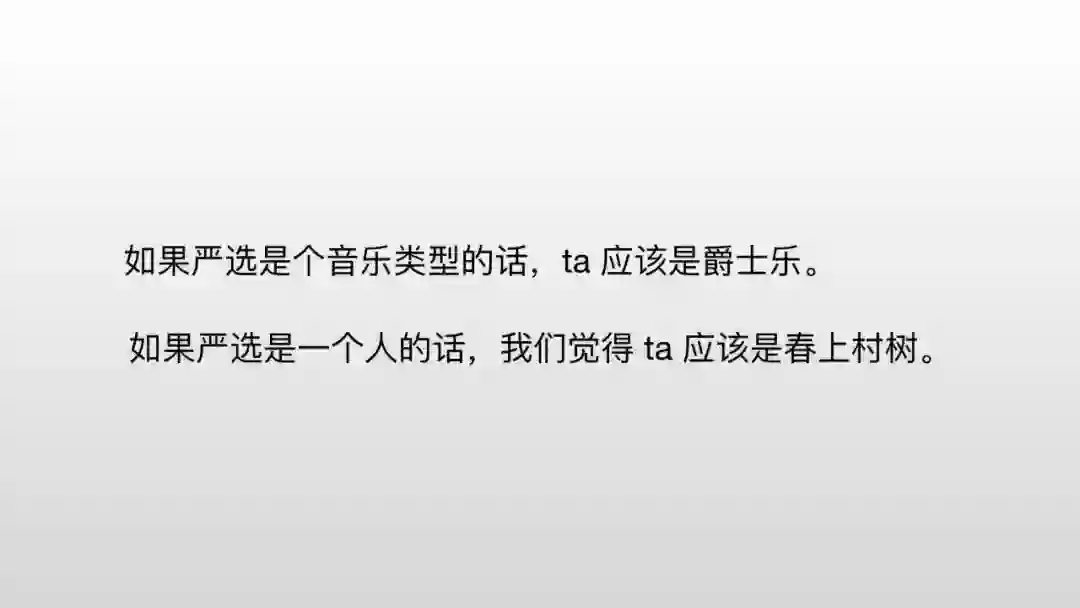 爵士乐好理解吧,村上也没什么不好理解的对吧,他的书——比如最新的《刺杀骑士团长》——就仍然是不注重情节,只注重氛围。几十页过去了,情节一点没动,光写氛围了。