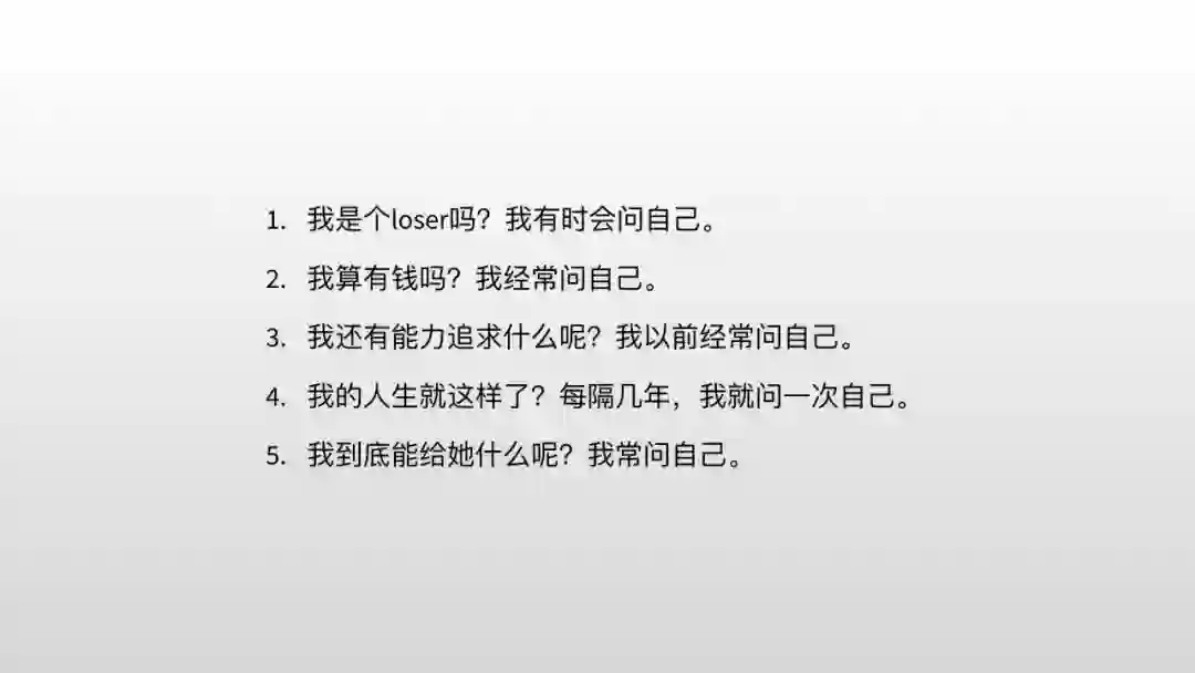 大家要勇敢点,所以也挺有意思是吧。强总,三十好几,有房有车,有妻有子,身体健康,生活安逸,然后这样一个人跟一群本该燥动、革命、摇滚的年轻人说,你们得躁起来,不要太安逸,这事怎么听都好想不太对劲。