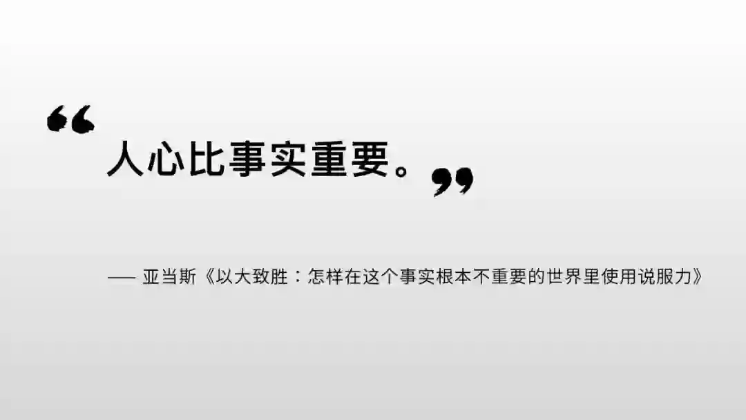 大家看下这本书的名字,「怎样在这个事实根本不重要的世界里使用说服力」。这句话很重要,我希望大家能再看一遍,对我们营销人来说,事实的确不重要。