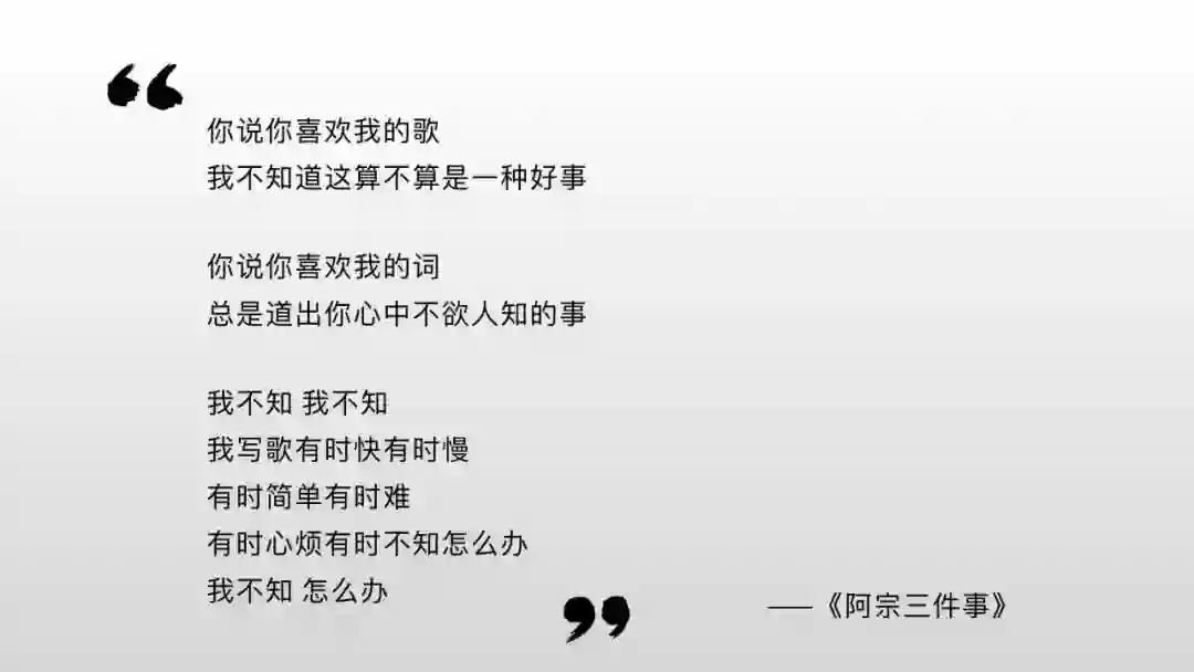 去年我写完《你不要送我礼物》我决定那年就封笔不写了。然后我在广州出差,听到了这首歌,一下子就崩溃了。因为这个歌其实是根据一首诗做的,我说过,一流文人才能写诗,我们写文案的最多是末流文人。