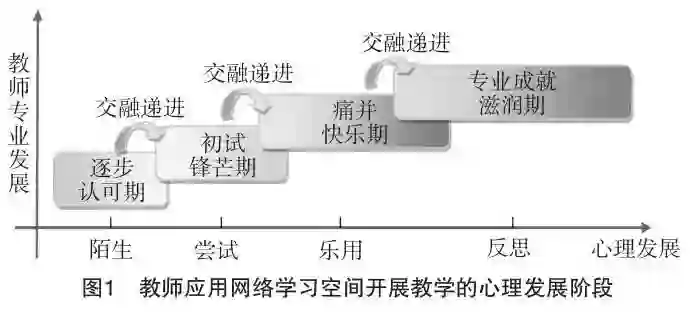 上述四个心理发展阶段是交融递进的,反映了教师应用网络学习空间开展教学活动的心理成长变化,也反映了教师应用网络学习空间开展教学改革的专业发展历程。