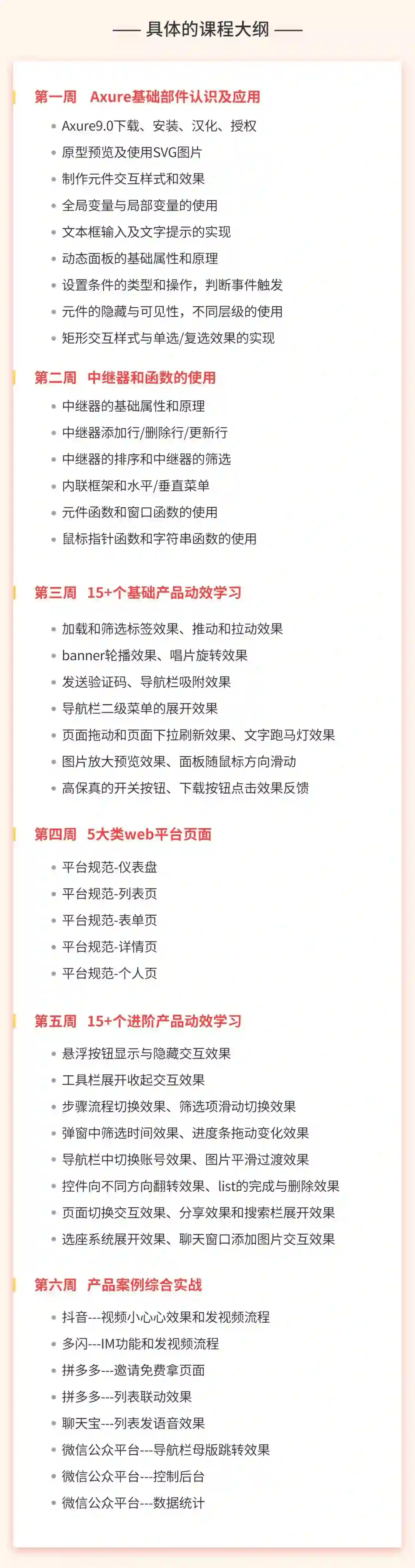 6 周每周一次直播课