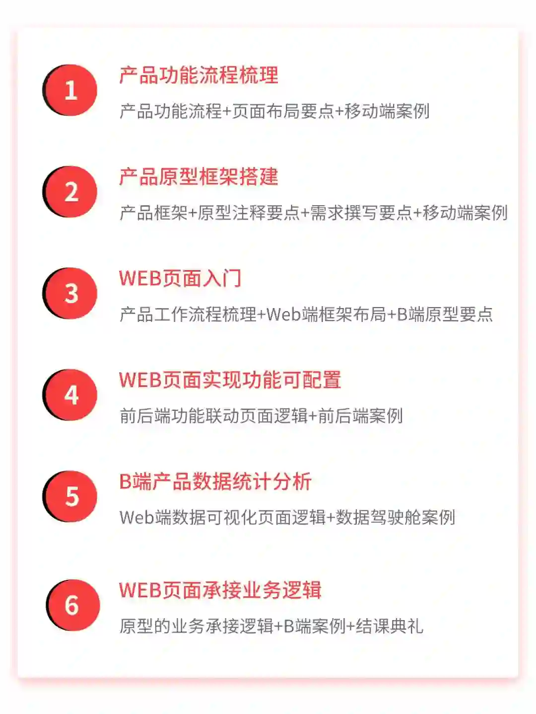 3、第三次直播,我们将学习web端产品平台/后台框架的布局方法;此外还会梳理产品经理的全链路工作流,更加明确原型在产品工作中的定位。