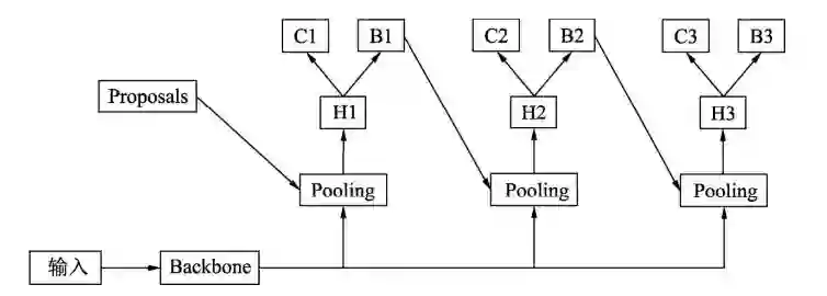 Cascade R-CNN的每一个检测器的边框输出作为下一个检测器的输入,并且检测器的IoU阈值是逐渐提升的,因此这种方法可以逐步过滤掉一些误检框,并且提升边框的定位精度。
