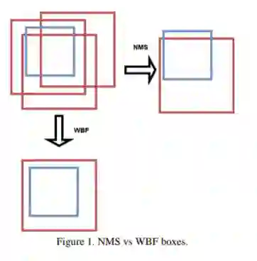 3、一阶段检测器和二阶段检测器各自产生一组独立的检测。为了将两组检测结果合并为最终结果,分别将Adj-NMS用于车辆和步行者类别,将WBF用于自行车者类别。