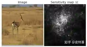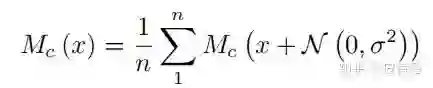 该方法虽然能显示出与分类结果相关的区域,但如图所示,存在很多噪声,且很难探究噪声的组成。smoothGrad的做法也很简单,即为多次输入加入随机噪声的图片,对结果并求平均,用以消除输出saliency maps的"噪声",达到“引入噪声”来“消除噪声”的效果。核心公式如下:
