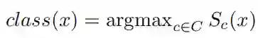 该论文做法是结合smoothGrad来优化CAM效果,首先解释一下smoothGrad。对于分类网络,最终分类类别取决于哪个类别的score最大,公式为:
