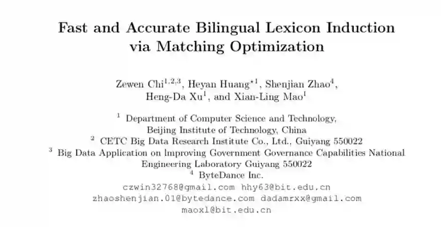 2、Fast and Accurate Bilingual Lexicon Induction via Matching Optimization