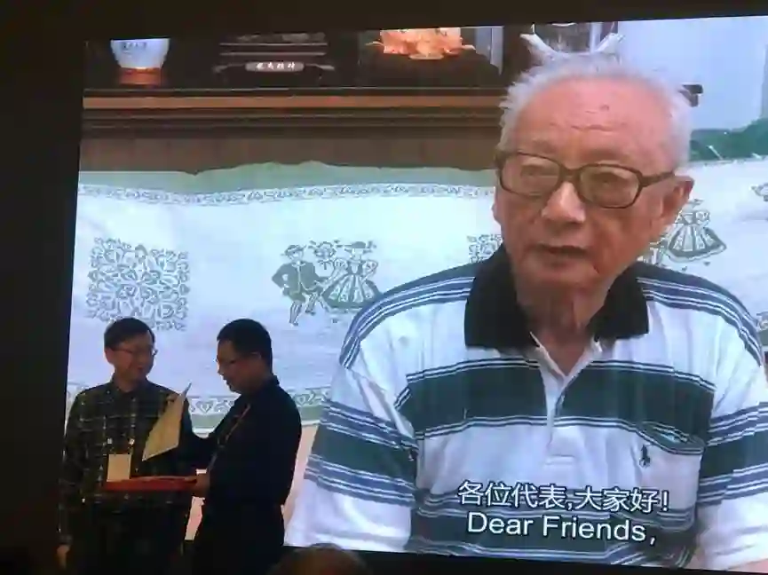 专委会主任周明博士向姚天顺颁发奖牌和证书,朱靖波教授代领