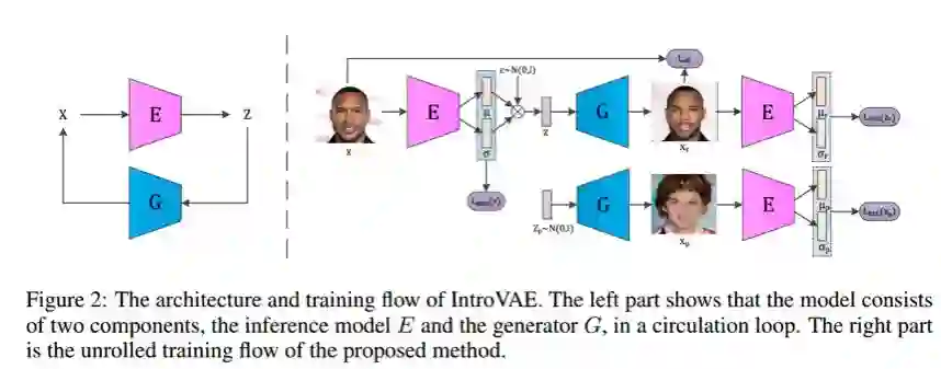 当前主流的生成高分辨率图像的方法是将高分辨率图像进行分解,分多个阶段,先合成低分辨率图像,再逐渐放大合成高分辨率图像。典型代表是LapGAN或者StackGAN,以及英伟达在ICLR18上的工作PGGAN。这种多阶段训练的方式增加了模型的复杂度,增加了复现文章结果的难度。为此,我们提出了一种新的深度生成模型——自省变分自编码器,能够以简单有效的方式直接合成高清真实图像。