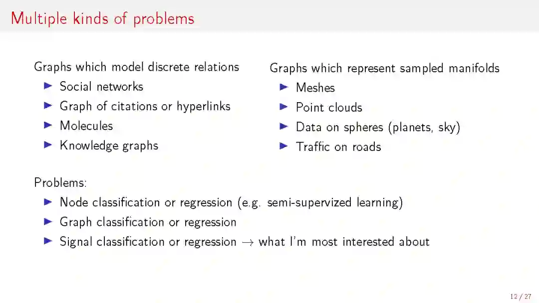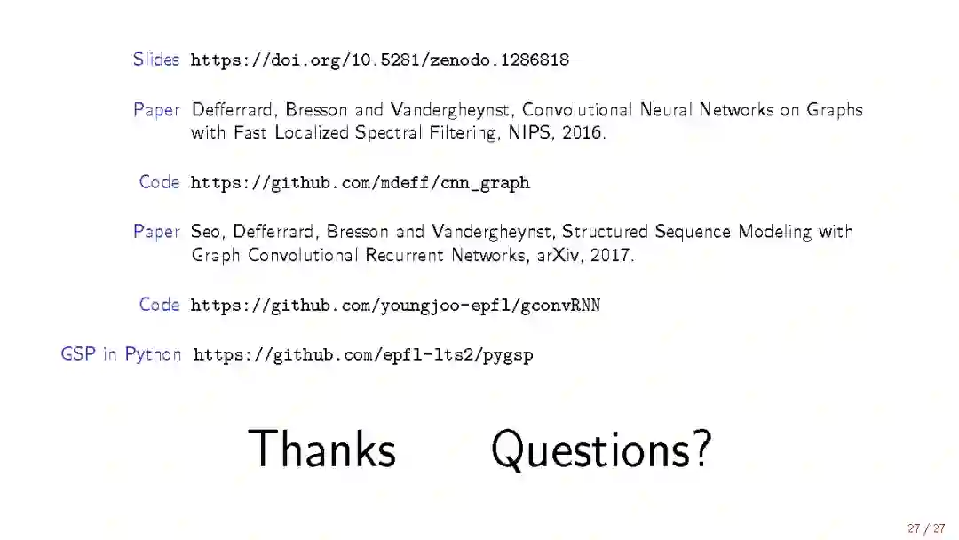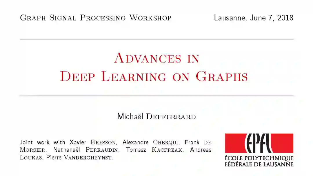 【导读】洛桑理工学院教授Michaël Defferrard在Deep Learning on Graphs at the Graph Signal Processing 研讨会上做了《Advances in Deep Learning on Graphs》的报告。 Michaël Defferrard是最早提出讲卷积网络用于graph数据的研究者之一,他在这次报告中介绍了最新将 Graph Convolutional Network(GCN)用于航空影像的研究并提出一些应用的挑战和机会 。