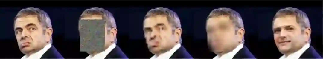 ),从新的、更有挑战的角度欺骗人脸识别系统:在不改变原来的数据分布的前提下把人脸匿名化,更通俗地说就是模型的输出还是一张逼真的人脸,姿态和背景也和原图相同,但完全无法识别出原来的人脸身份,也就是「换了一张脸」。作者们提出的模型 DeepPrivacy 是一个条件生成式对抗网络(conditional GAN),生成器能够以原有的背景以及稀疏的动作标注生成逼真的匿名(其它身份的)人脸。生成器的架构是一个 U-net,用逐步扩大图像尺寸的方式最终生成 128x128 尺寸的图像。为了避免向这个模型泄露个人信息,按照作者们的设计,这个模型的输入就直接是经过随机噪声遮挡的人脸,模型完全观察不到任何原有面部信息。不过,为了保证生成的质量以及动作的一致性,作者们仍然需要两组简单的图像标注结果:圈出了面部位置的边界框,以及(与 Mask R-CNN 中相同的)标出了耳朵、眼睛、鼻子、肩膀一共 7 个关键点的稀疏姿态估计值。根据作者们的测试,经过他们的模型匿名化的人脸仍然保持了接近于原图的人脸可识别性,普通的人脸识别模型对于匿名化后的图像,识别出人脸的平均准确率只相对下降了 0.7%。而人脸含有的身份信息自然是 100% 不重合的。