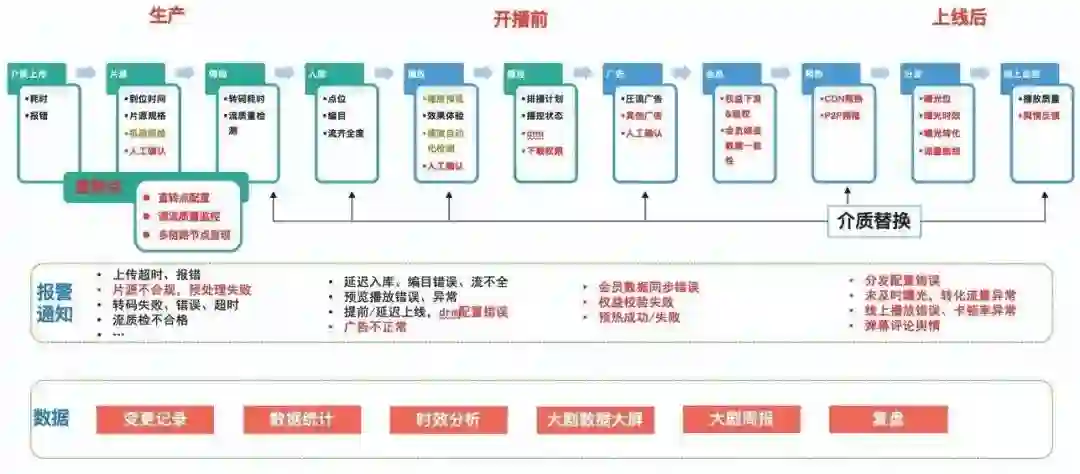 大剧保障基本涵盖了大剧生命周期的全链路各个阶段保障,其中核心环节包括以下方面: