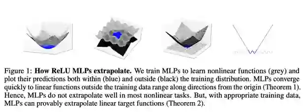 作者发现前馈神经网络在学习简单多项式的时候外推的表现不好,而图神经网络在比训练集大很多的网络上完成有挑战的任务如预测物理系统的演化时间、学习图算法、解决数学问题中表现的很好。作者对这种差别进行深入研究,研究通过基于梯度下降训练的神经网络是如何外推的,它们在训练集之外学到了什么。经过分析,明确了在什么情况下多层感知机和图神经网络可以外推出良好的结果,并且提供了一个假设:外推的成功依赖于对模型架构和输入的非线性编码