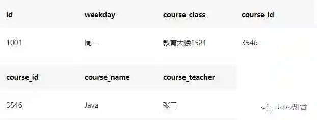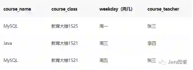 这样就减少了数据的冗余(即使周一至周日每天都有Java课,也只是course_id:3546出现了7次)