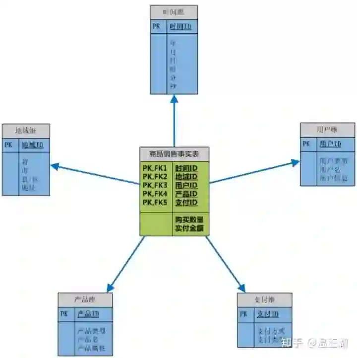 一般来说,对于数仓,事实表的增删改操作相比维度表更为频繁,模型建立后,维度表中的数据保持相对稳定。试想,商品销售行为是一直在发生的,而用户注册和产品更新不总是随时有的。再说到地域和支付方式,那就更少变化了。