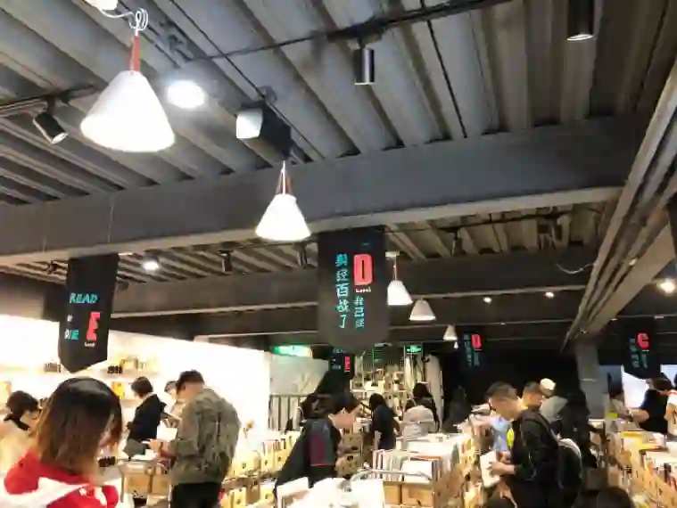 售卖现场的设计很有特色:图书没有按照文学、艺术、财经等传统方式分区,而根据阅读“难度”划分为 A至E五个部分,A区都是绘本漫画,用拼音幽默地写着“wo ren shi de zi bu duo(我认识的字不多)”,难度最高的E区“read or die”大都是专业学术著作或编程书籍。