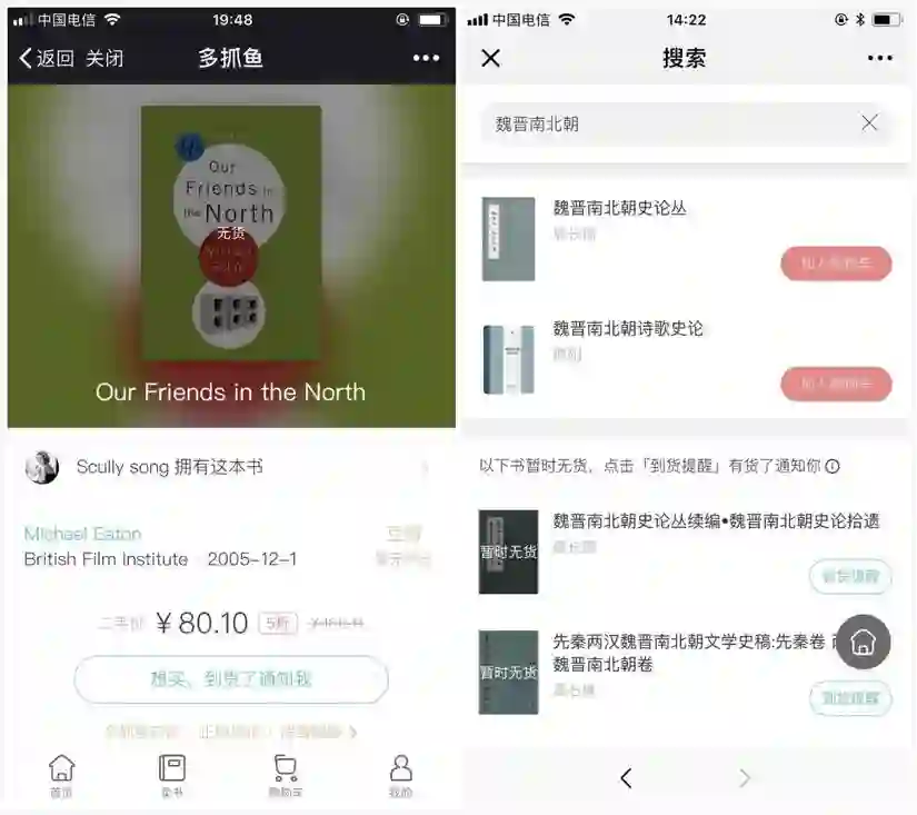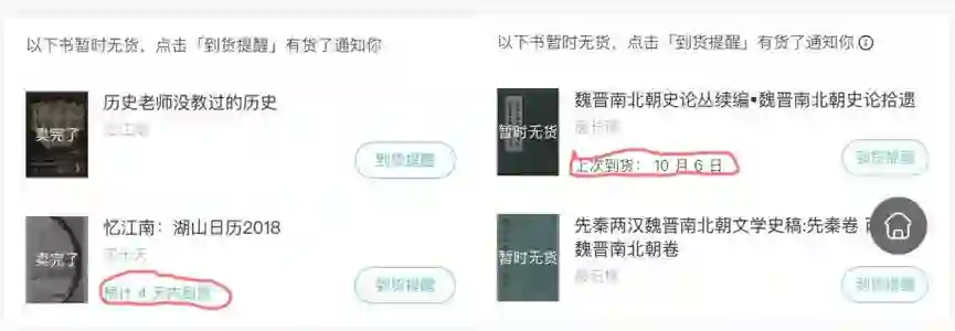 相较于卖新书的网站,缺货可不是什么好的用户体验,好在二手平台库存都是动态的,今天没有货不代表明天也没货,所以在普通电商平台并非高频使用的“到货提醒”功能按钮在多抓鱼被突出显示。
