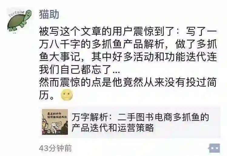 猫助演讲中的一些内容,也被用在其他场合对多抓鱼的宣讲和复盘中,但传播效果都没有这次好,可见平台的选择和呈现方式对Refer的重要。