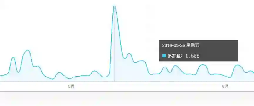 同时,根据百度指数中的搜索趋势:虽然 2017年5月多抓鱼已经正式上线,但百度指数直到2018年3月之前都是“查无此鱼”,直到3.11-3.17这一周才有了数据,刚好与上图公众号阅读量第一个激增的时间点相吻合。