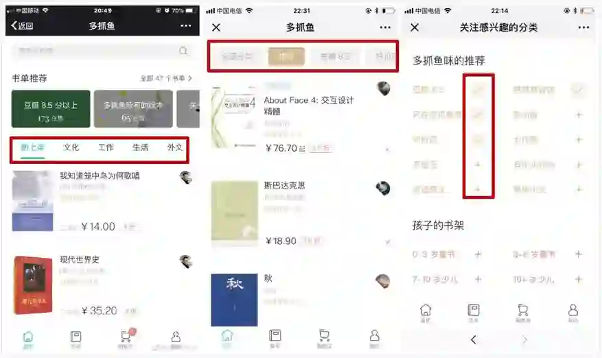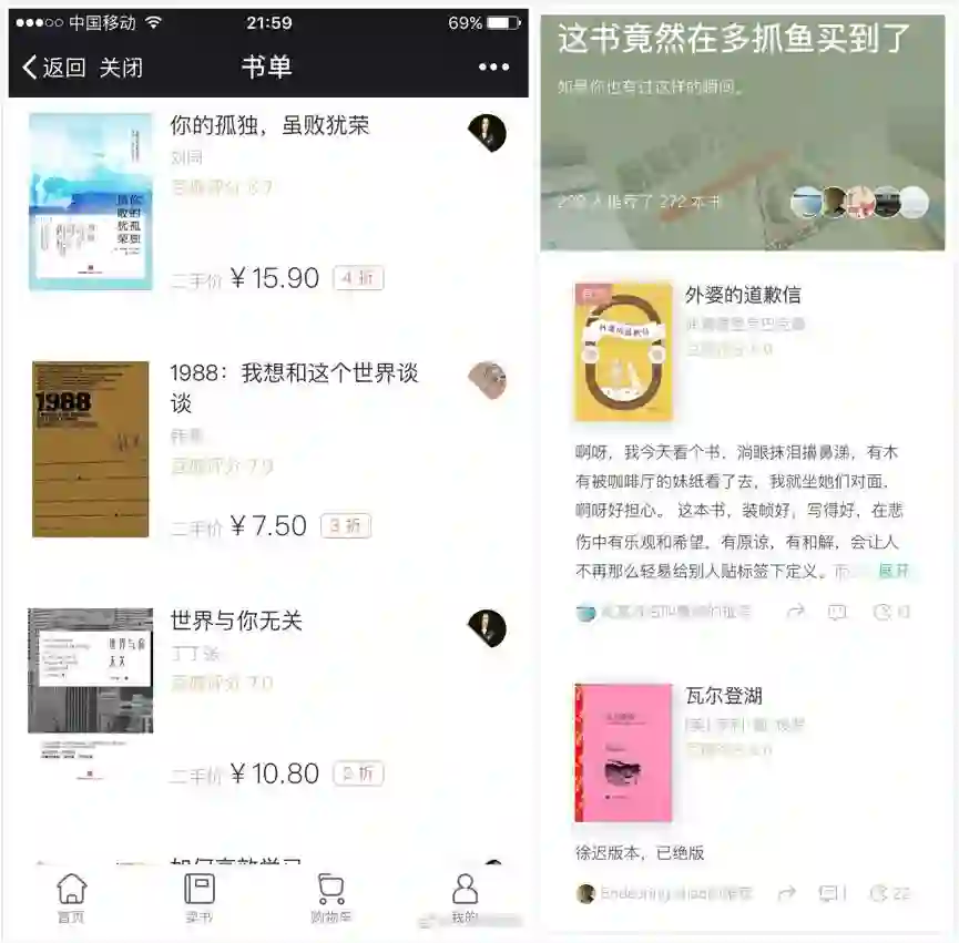 对于二手图书这种自带社交属性的内容电商,有社交才能增大用户粘性。只不过多抓鱼的社交做得很克制,是通过个人主页的改版和新版书单先社区化,再一步步渗透。