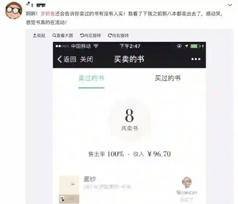 为了提高售出率,用户可能会将更多更优质的书卖给多抓鱼,又进一步促进了买卖正向循环。