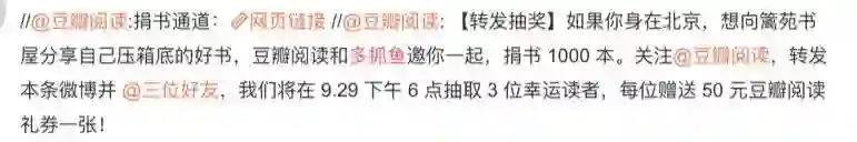 同时,与豆瓣阅读合作,发起捐正版好书给“最美丽图书馆”帮篱苑书屋换好书活动,并且在产品中上线捐书功能。
