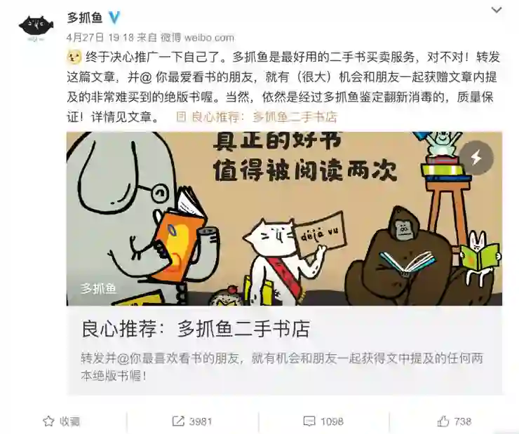 8月30日,Morketing 《上线18个月,卖出100万本二手书,多抓鱼要做二手书市场的领头羊?》从品牌的角度又再一次讲述了多抓鱼的故事。