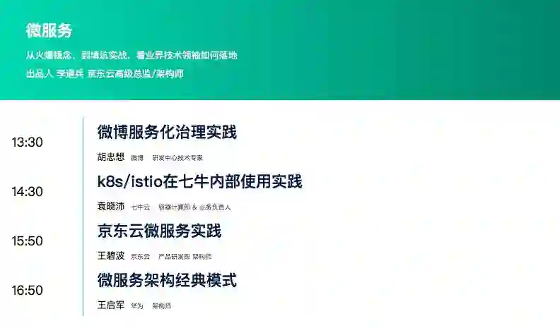 本期 GIAC 大会上,微服务部分精彩的议题如下: