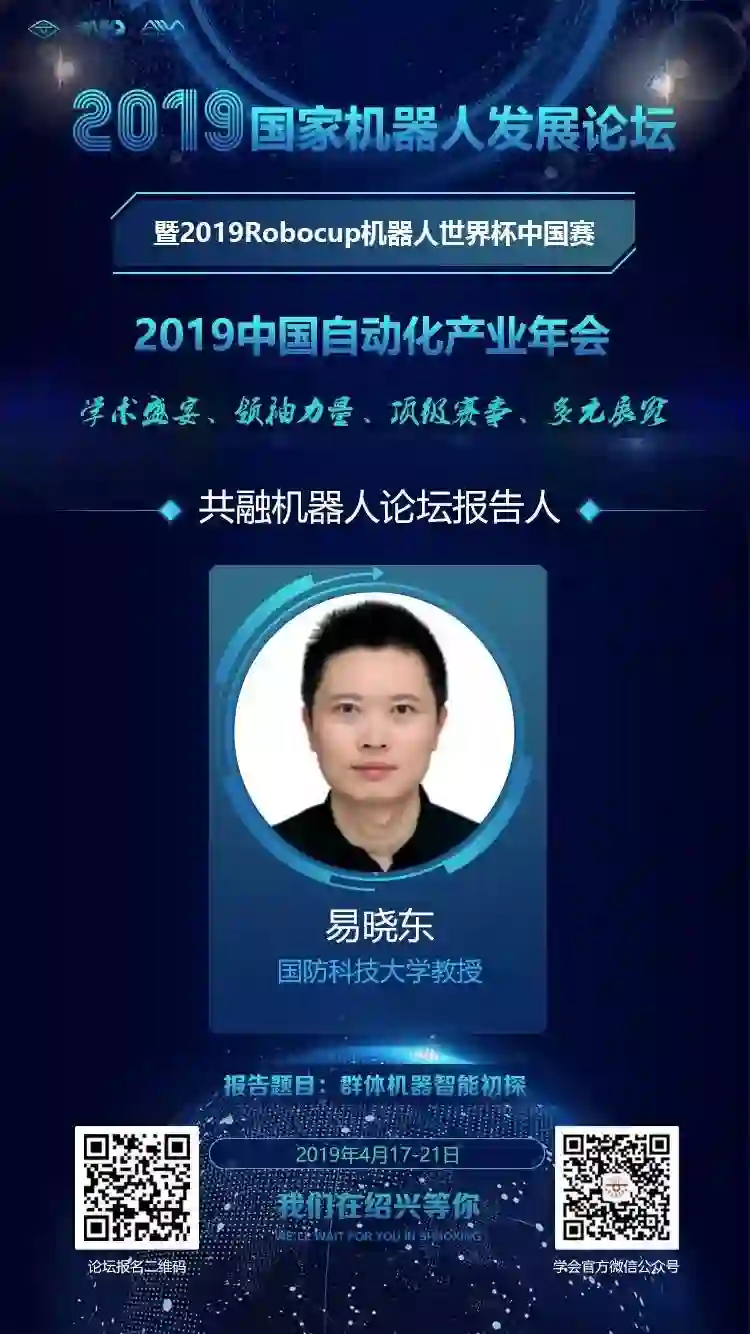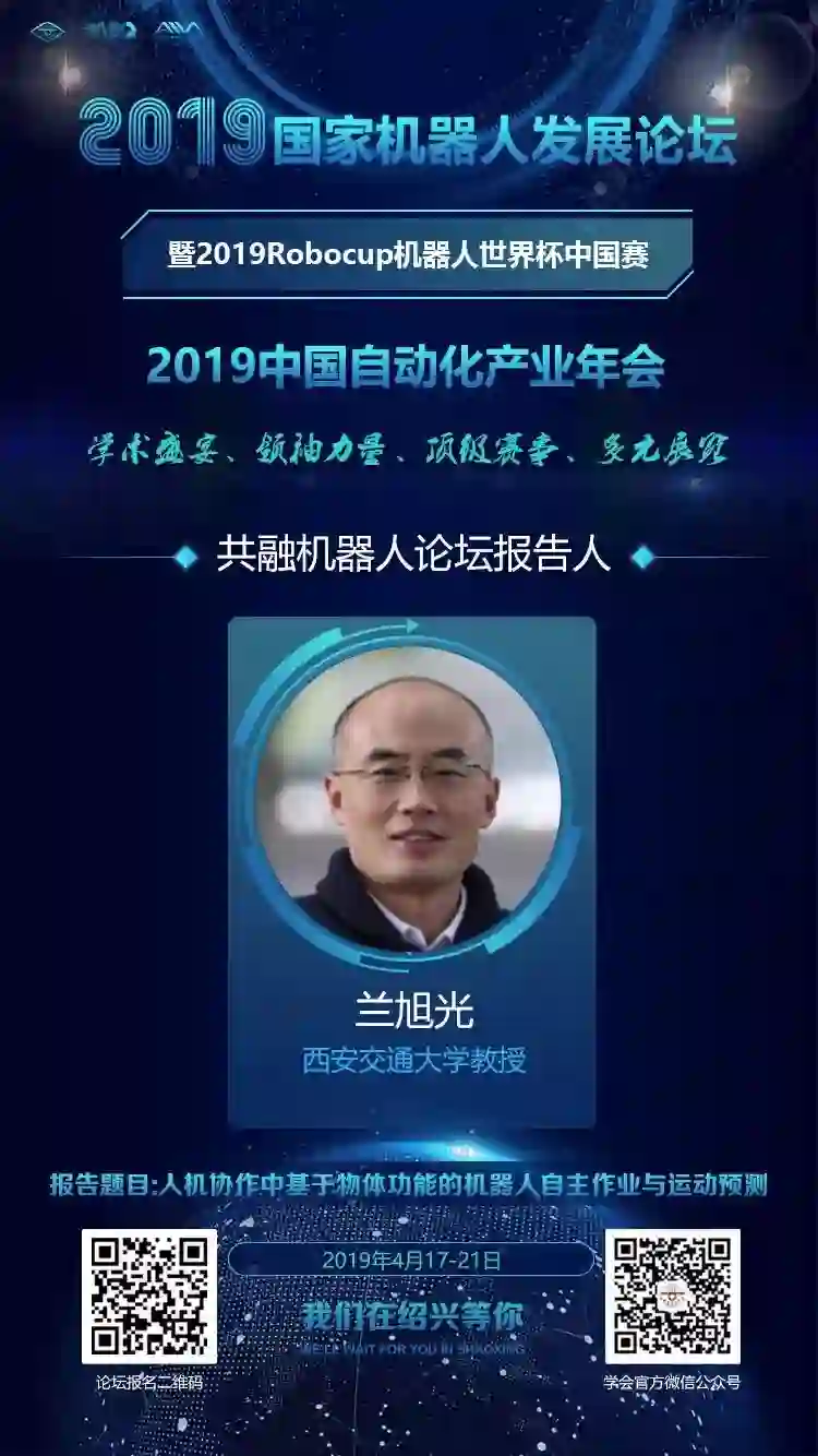 2019年国家机器人发展论坛将于2019年4月17-21日在浙江绍兴举办,敬请关注学会官方微信公众号和网站,了解最新论坛信息。