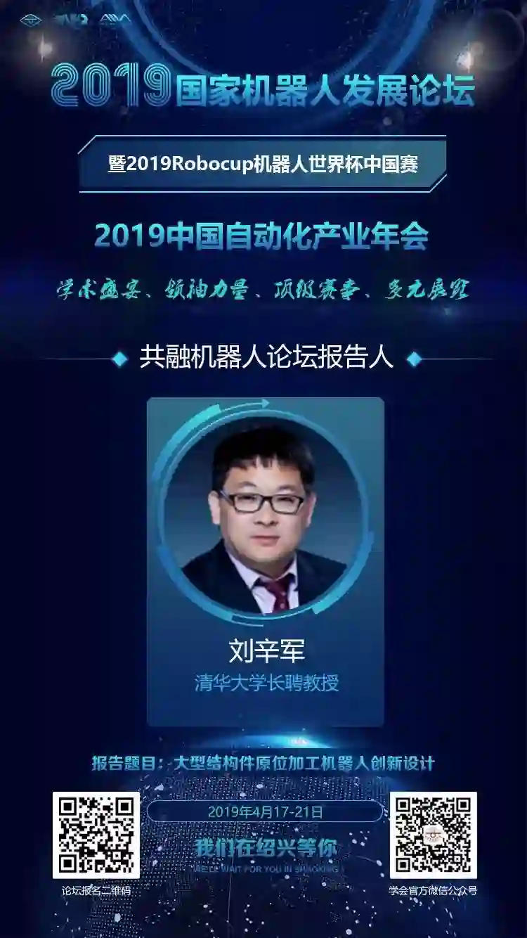报告人简介:刘辛军,清华大学长聘教授、博士生导师,教育部“长江学者”特聘教授,国家“万人计划”领军人才,国家杰出青年科学基金获得者,山东泰山产业领军人才,德国“洪堡”学者。现任清华大学机械工程系副主任、精密超精密制造装备及控制北京市重点实验室主任、清华大学(机械系)-西门子先进工业机器人联合研究中心主任。研究方向是机构学与机器人、先进与智能制造装备。发表论文152篇,H因子30,2014-2018连续五年入选爱思唯尔中国高被引学者榜单,授权发明专利61件,获得国家自然科学二等奖、中国机械工业科学技术奖(发明类)一等奖、教育部自然科学奖二等奖、中国好设计奖银奖、第三届中国科协优秀科技论文奖、《机械工程学报》首届高影响力论文奖、全国机器人专利创新创业大赛特等奖等。