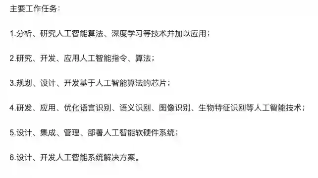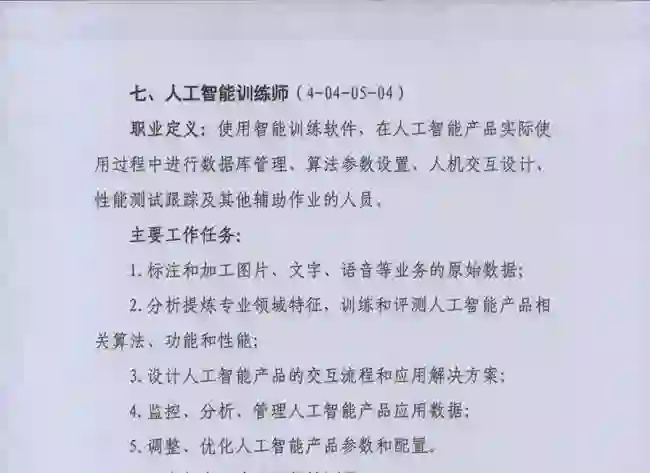 当时,这门职业被定义为「从事与人工智能相关算法、深度学习等多种技术的分析、研究、开发,并对人工智能系统进行设计、优化、运维、管理和应用的工程技术人员」。