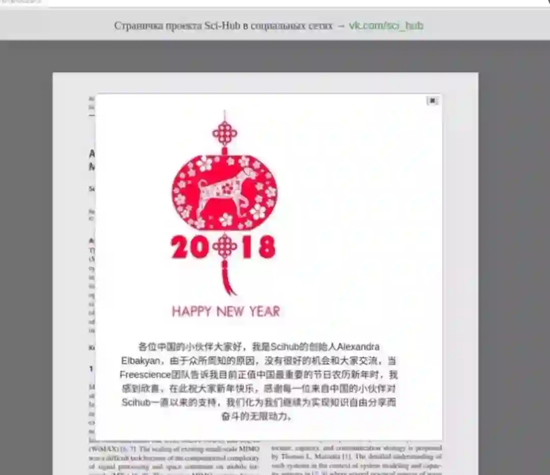 图丨今年春节,Elbakyan 还在 Sci-Hub 上送出了她对中国读者的新春祝福