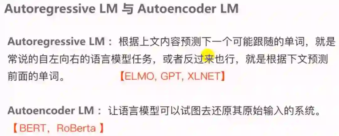 Autoregressive语言模型:指的是依据前面(或后面)出现的单词来预测当前时刻的单词,代表有 ELMo, GPT等。