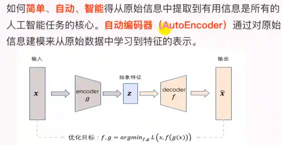 这里我们可以看到,AutoEncoder在优化过程中无需使用样本的label,本质上是把样本的输入同时作为神经网络的输入和输出,通过最小化重构误差希望学习到样本的抽象特征表示 。这种无监督的优化方式大大提升了模型的通用性。