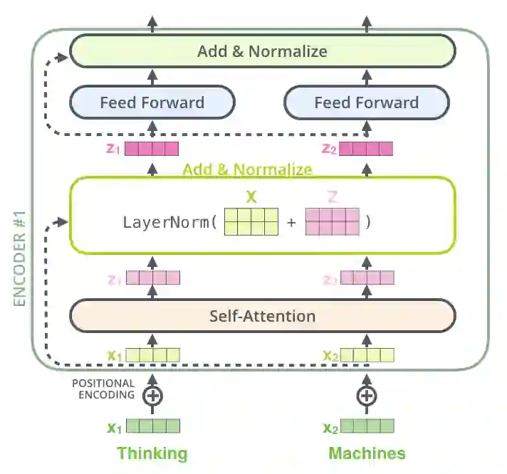 输入是原始词表中词的 。接着进行Input Embedding,把词 转换成分布式的表示。在语言模型中词的顺序还是很重要的,因此Transformer加入了Positional Encoding,也就是加入了词的位置信息。encoder的输入是Input Embedding 加上对应位置的Positional Encoding。