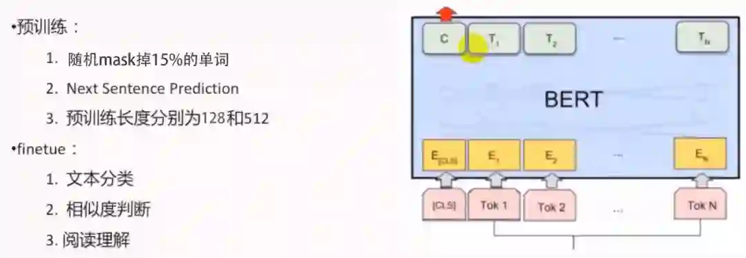 BERT预训练之后,会保存它的Embedding table和 层Transformer权重(BERT-BASE)或 层Transformer权重(BERT-LARGE)。使用预训练好的BERT模型可以对下游任务进行Fine-tuning,比如:文本分类、相似度判断、阅读理解等。