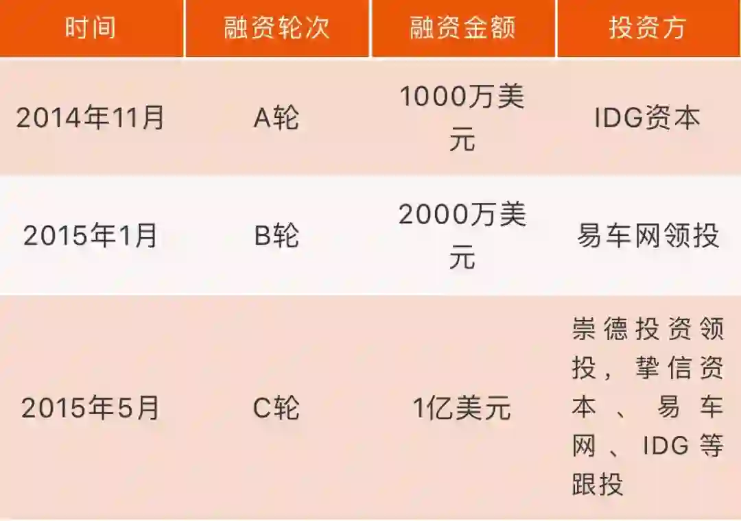 随后,嘀嗒出行又快速拿到两轮融资。2015年1月,嘀嗒出行获得易车领投的2000万美元B轮融资。同年5月,嘀嗒出行又宣称获得由崇德投资领投,挚信资本、易车网、IDG等跟投的1亿美元C轮融资。