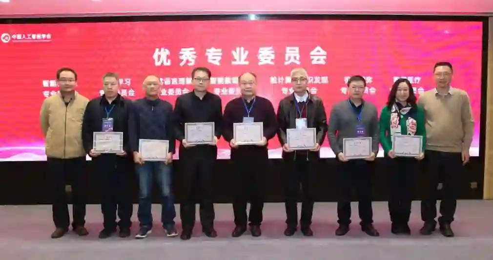 杨放春常务副理事长和王国胤副理事长为2018年度优秀专业委员会代表颁发证书。