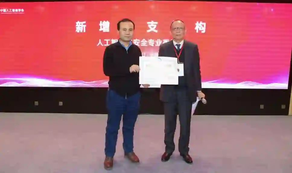 李德毅理事长为新增设人工智能与安全专业委员会颁发证书。