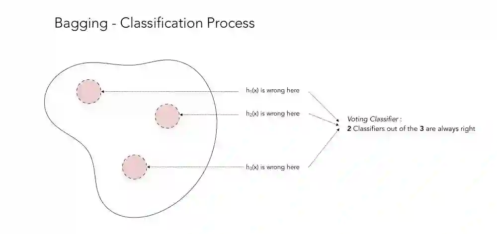Bagging 指的是一种叫做「Bootstrap Aggregating」(自助聚合)的技术。其实质是选取 T 个 bootstrap 样本,在每个样本安装一个分类器,然后并行训练模型。通常,在随机森林中,决策树是并行训练的。然后,将所有分类器的结果平均化,得到一个 bagging 分类器: